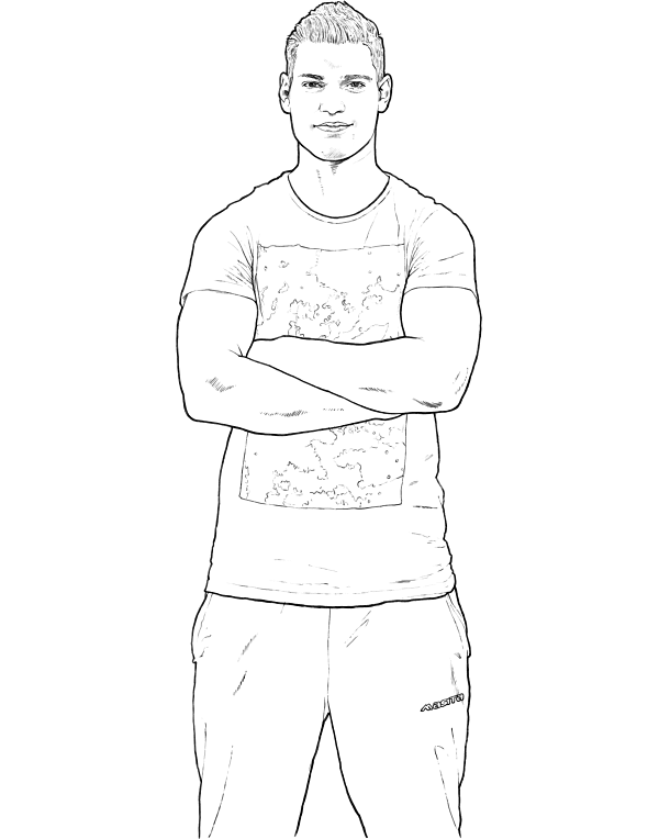 De tekening van de jongen met de oranje hoody is het stijlvoorstel waar ik deze opdracht mee verdiende.
