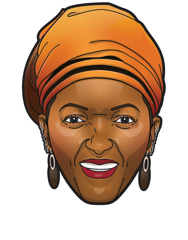 De vier kleurrijke gezichten daarna tekende ik voor Vredesorganisatie Pax. Deze portretten maakte ik van de winnaars van een Pax Duif Award: Typhoon, Daan Roovers, Mpho Tutu en Cobi Noordhoff. De illustraties werden gebruikt tijdens de uitreiking van deze awards.